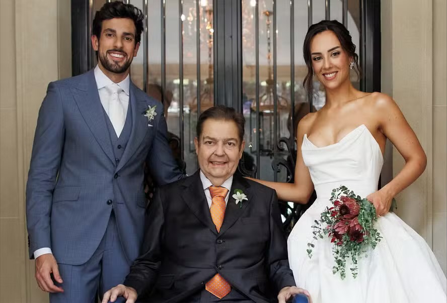 A celebração, que reuniu familiares, amigos próximos e algumas figuras conhecidas, era marcada pela emoção da noiva e pela alegria da ocasião. No entanto, o momento em que Faustão entrou no salão foi o que mais chamou atenção. Muitos convidados não seguraram a surpresa ao vê-lo sendo conduzido em cadeira de rodas, mas aplaudiram de pé em sinal de carinho e respeito ao apresentador que marcou gerações na televisão brasileira.
